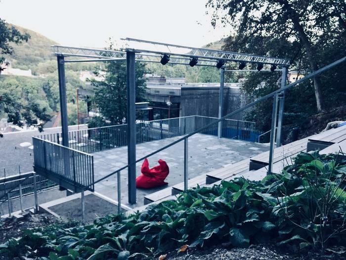 Um die Bühne "Spielraum am Hang" technisch besser nutzen zu können und auch bei Dämmerung bespielbar zu machen, wurden die Zuwege optimiert, ein Bühnennebenzugang gebaut, die Zu- und Aufgänge beleuchtet und Ton- und Lichttechnik für die Bühne und eine Überwachungskamera angeschafft.