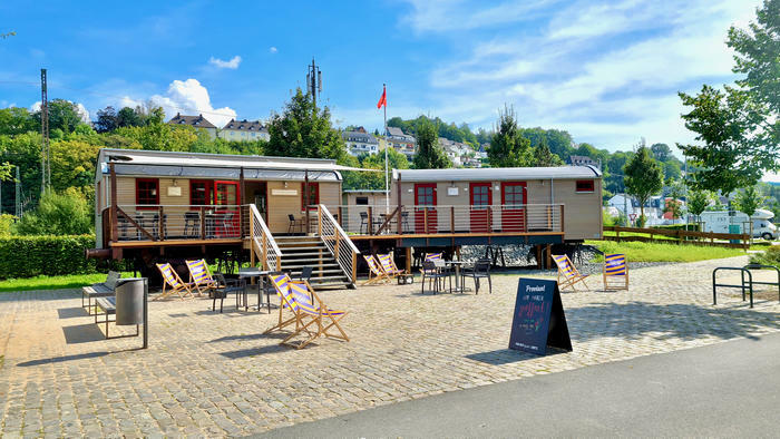 Ein als historischer Eisenbahnwaggon gestalteter Sanitärwagen und ein ansprechender Rastplatz für Radfahrende und Spaziergänger:innen ergänzt nun das Angebot im Lennepark in Finnentrop und steigert die Attraktivität.