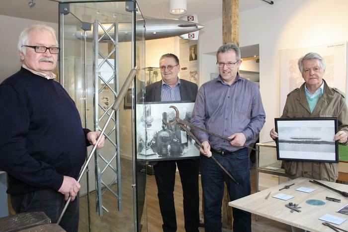 Foto: Mitglieder des Arbeitskreises Industriegeschichte mit einigen Exponaten, Heimat- und Geschichtsverein Werdohl e.V. (Quelle: Kanbach)