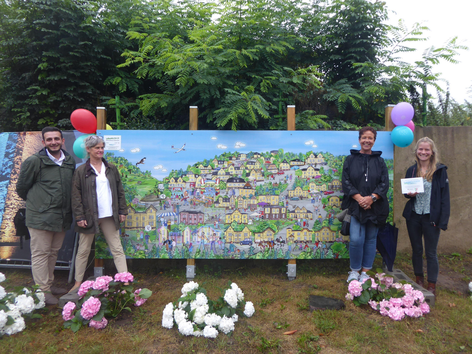 Einweihung des Wimmelbilds in der Werkssiedlung Langenstück